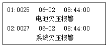 ?歷史故障,最多可記錄30條歷史故障,可上下翻頁查詢。記錄每條故障發生時間和消除時間。按取消鍵返回到信息查詢頁面。
