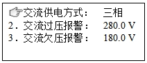 ?交流設置,可設定交流供電方式(單相或三相)、交流電壓過欠壓值。當設為單相時,只顯示單相電壓,設為三相時顯示三相電壓。