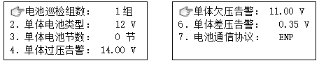 ?當用戶配有電池巡檢儀時,默認為單體電池類型為12V,電池節數(0~24)。